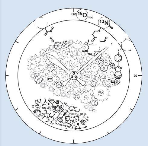 用碳-11 标记的PET 显像剂可用于探查肿瘤、脑血流、蛋白质合成以及神经递质功能活动, 在基础科学和临床研究中具有非常重要的意义。那么,什么是PET 呢? PET 是英文“Positron Emission Tomography”的缩写,其含义是“正电子发射断层成像”。其原理是将注射到生物体内的PET 影像探针上的正电子核素通过β+ 衰变释放一个正电子,该正电子与附近的一个负电子发生湮灭,产生一对反方向的γ 射线,这些信号被PET 扫描仪捕捉后,通过计算机处理就可以得到图像。
