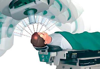 为了确保治疗的精准性,治疗前需要用立体定位系统对患者病灶进行定位。这个立体定位系统有一个特制的坐标系。患者被立体定位系统相对固定后, 通过CT和MRI 对病灶进行断层扫描,可以显示患者病灶与坐标系各参照点的相对位置。