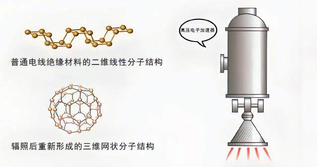 辐照交联形成的三维网状结构可使聚合物具有不易熔融和难溶于溶剂等性质。如低密度聚乙烯在辐照交联前熔融温度为115 ~ 125 ℃, 而辐照交联后250 ℃ 时仍能保持其外形不变,且物性会变得柔顺而有弹性,其绝缘性、耐腐蚀性、耐冲击性等性能也得以大幅度提高。这种聚乙烯材料经过辐照交联之后品质得到了极大改善,可广泛应用于电线电缆绝缘层、泡沫塑料、热收缩管等方面。