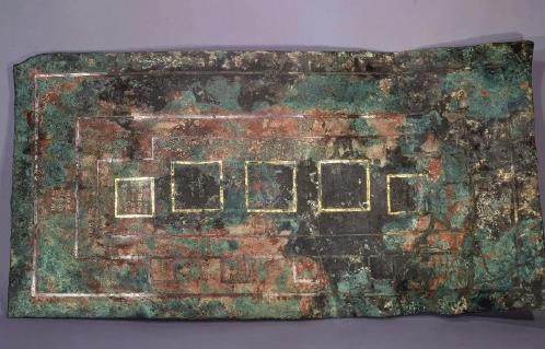 历经千余年,中山王厝墓早已变了模样,而一块幸免于难的铜版为我们清晰地刻画了当年中山王墓的规模,这就是错金银铜版兆域图。该铜版以金、银嵌错而成,上有铭文,结合铜版内容及王墓的情况可知,图版绘制的便是王厝墓的规划设计图。按《周礼·春官·冢人》中所说“冢人掌公墓之地,辨其兆域而为之图”,人们称其为中山王厝兆域图。兆域图分为三个层层嵌套的区域,上面标有“中宫垣”“内宫垣”等铭文,这些表明陵园不同区域的名称;此外还有“诏宗宫方百尺”“正奎宫方百尺”等铭文,这些表明陵园不同区域的建造尺寸。
