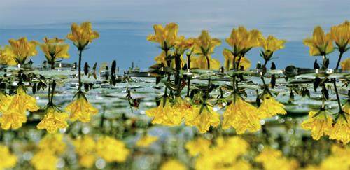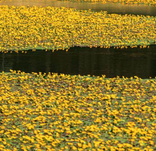 既可食用又可药用的荇菜还是一种别具特色的水生观赏植物。其叶片形似睡莲,小巧别致,成片栽植可营造出绿意盎然、静谧清朗的自然水景;其金黄色的花朵不仅鲜艳夺目,而且挺出水面,姿态秀丽,花期也很长,堪称点缀水景的佳品。在江苏南京紫金山南麓的琵琶湖上,就栽植了大片的荇菜。每逢春夏暖风吹拂之际,一片片嫩黄色的花朵在湖面上飘摇绽放,带给人别样的动人诗意。在浙江绍兴“书圣”王羲之故里的墨池中,葱茏茂密的荇菜宛若巨大的绿毡,将游人的心境抚熨得格外宁静。此外,在大兴安岭深处的黑龙江古里河国家湿地公园、上海虹口的曲阳公园、湖南益阳洞庭湖的明朗山、云南大理的茈碧湖……由荇菜带来的美妙景色,遍布我国大江南北。