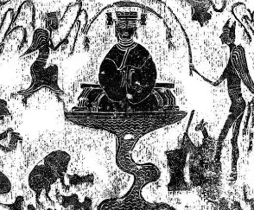 这种鸟之所以得名戴胜,其实源于我国古人丰富的想象力。胜,又名华胜,和步摇、簪、钗等一样,是备受古代女性青睐的一种华丽的头饰。《释名》中记载:“华,象草木华也;胜,言人形容正等,一人著之则胜也,蔽发前为饰也。”华胜仅深受凡人的喜爱,也深受传说中神话人物的喜爱。与戴胜相关的最有名的神仙,当属我国上古神祇西王母。古代文献中提及西王母时,几乎都会提到胜,如“西王母其状如人,豹尾虎齿而善啸,蓬发戴胜”,或者“有人戴胜,虎齿,有豹尾,穴处,名曰西王母”。戴胜俨然成为了西王母的标配,以至于后世直接用戴胜来指西王母。在已出土的两汉时期的画像石上,佩戴胜和坐龙虎座成为辨识西王母的重要元素。