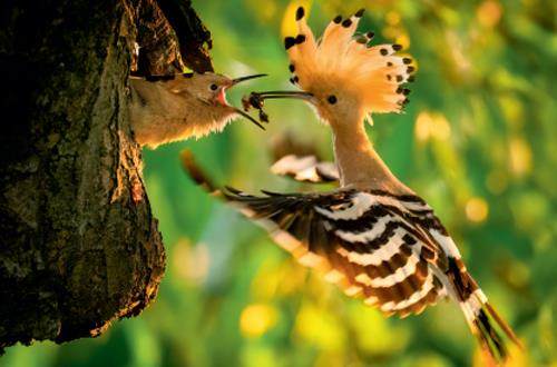 戴胜鸟的头枕部长有数十根棕栗色、黑白边的羽毛,平时呈收拢状,紧张、兴奋或求偶时,羽冠就会展开,犹如戴了一顶华丽的头饰,故而我国先民为其取名为戴胜。正如《广韵》所云:“貇,戴胜鸟也,头上毛似胜。”如此看来,戴胜是靠颜值为自己博得了一个好听的名字。