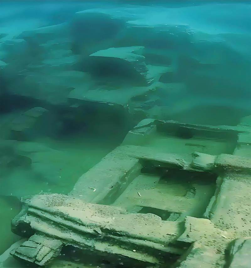 专家通过水下考古发现,抚仙湖东北部水域确实存在着一处水下建筑群遗址,其规模之大令人叹为观止。在面积约2.4平方千米的区域内,分布着大量石质建筑的痕迹,包括石板、石条等,这些石头上虽长满了青苔,但雕琢痕迹明显、比例协调,并非天然形成,而是人工雕琢构件。