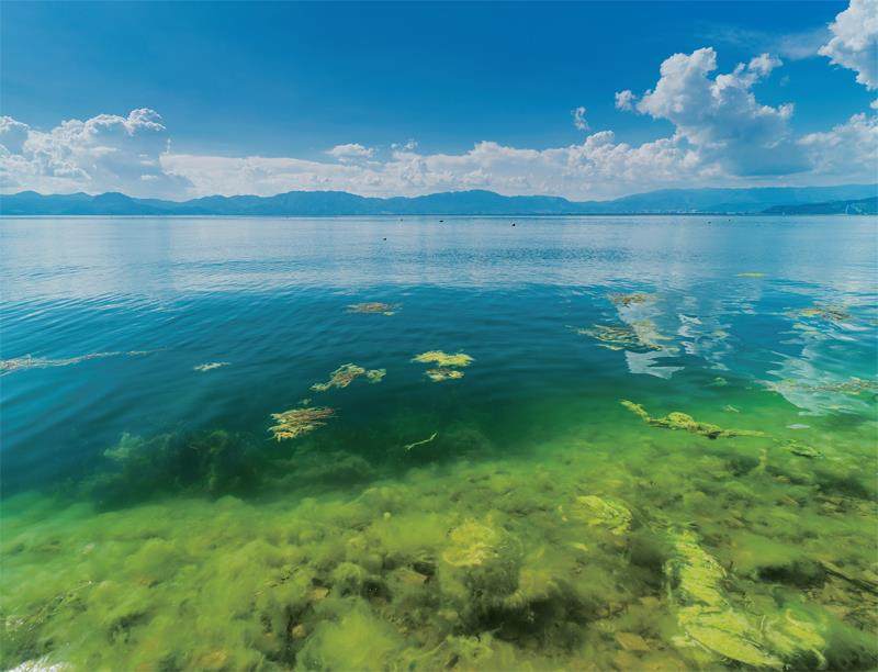 在340多万年前,因地壳板块的急剧运动,喜马拉雅山脉的崛起使得云贵高原也不断抬升, 引发了一系列断层现象, 最终在云南高原的群山中形成了包括抚仙湖在内的众多湖泊。站在抚仙湖的岸边, 游人能轻易看见因深度差出现的分界线。这种断崖式水位令人心惊胆战,倘若不小心坠入湖中, 就像站在台阶边缘一脚踏空,直面深渊。