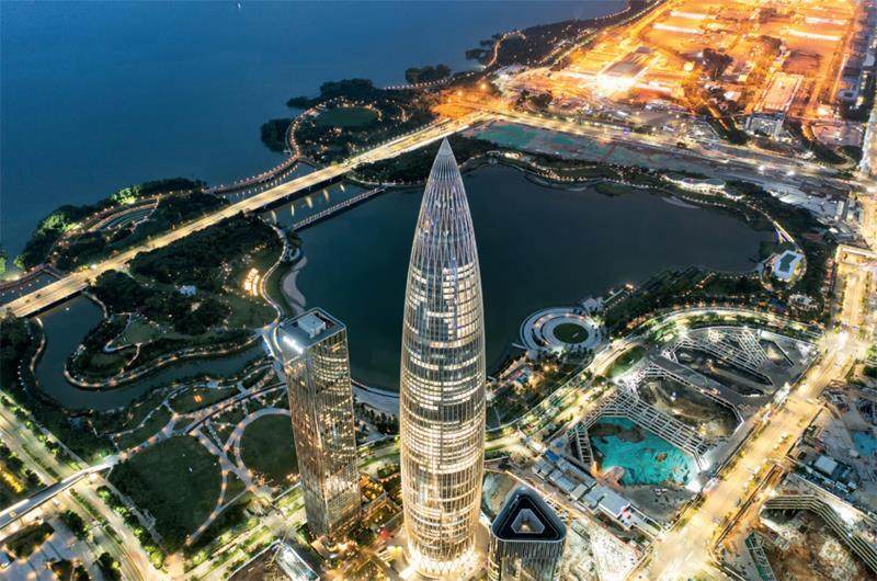 位于深圳福田中央商务区(CBD)的平安国际金融中心,高599米,是以“垂直绿色工厂”理念打造的全球领先的绿色摩天大厦。该大厦顶部10层及部分外立面,镶嵌着总面积达6200平方米的高效碲化镉光伏玻璃,形成了华南地区最大的单体建筑光伏系统,年发电量可达150万千瓦时,相当于满足3000户家庭一年的用电需求,年减少碳排放约1200吨。大厦还配备智能微电网系统,实现太阳能发电与市电的智能切换,并通过建筑能源管理系统实时监控能耗。结合空气净化幕墙等技术,使整体能耗较传统超高层建筑降低30%以上。可以说,“建筑即发电站”的理念为城市核心区的绿色低碳发展提供了标杆范例。