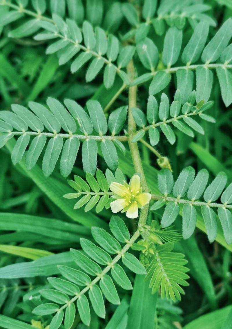 说蒺藜低调,是因为它与绝大部分植物的直立生长状态不同。蒺藜并非向上生长,而是以一种“躺平”的姿态,贴着地面四下生长,仿佛在拥抱大地一般。蒺藜的茎是从基部开始分枝的,全株枝长通常在20~60厘米,茎干和叶片均密布丝状柔毛。因为全株“躺”在地上横向生发,所以蒺藜的植株特别矮小,在野外草丛中极不起眼。