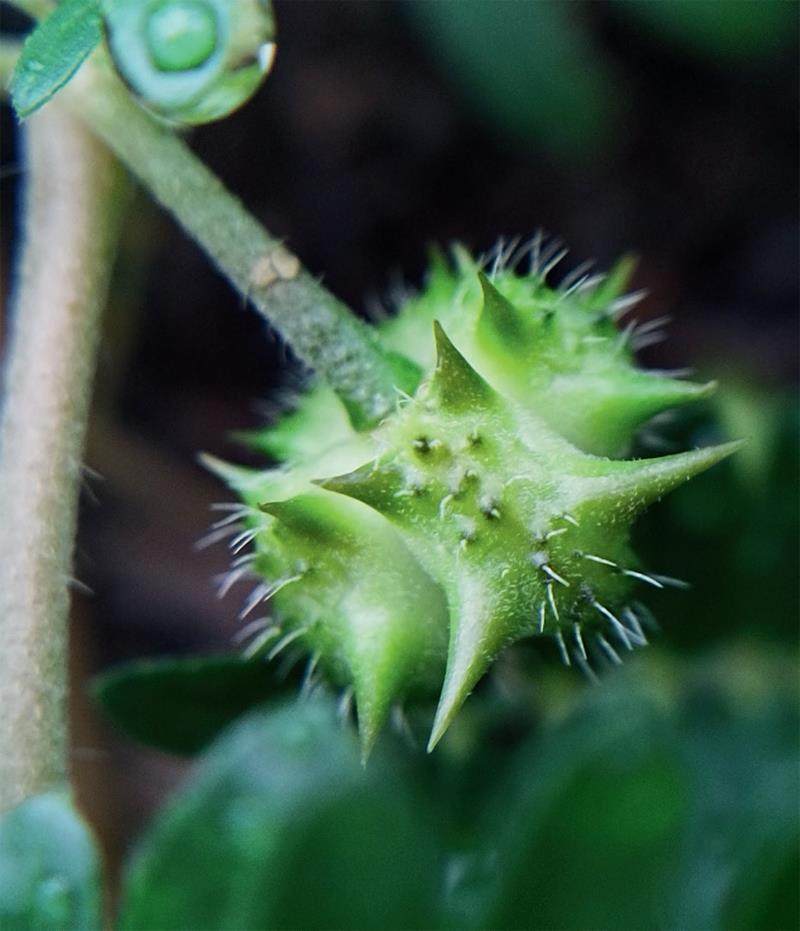 不过,低调的蒺藜有着超强的生命力,其种子一旦在合适的土壤中萌生出来,枝叶便会沿着地面快速成片地蔓延生长开来,将其浓绿的叶片和躲藏在叶片间的带刺果实铺满大地。这种令其他植物望尘莫及的生长态势,又显得那么张扬霸道。