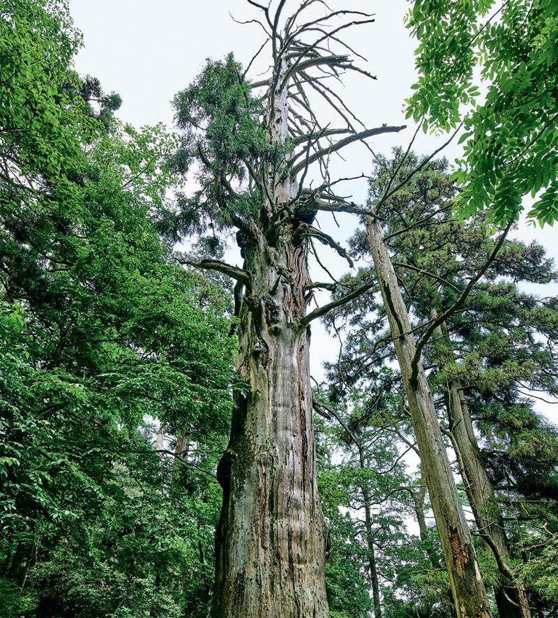 其次是“高”。天目山的大树“身高”普遍在10~40米,许多柳杉看起来直刺云霄,但在“大树王国”中,身高最高的并不是柳杉,而是平均高度达45米的金钱松种群,其中一株金钱树高58米,是全球已知最高的金钱松,人称“冲天树”。
