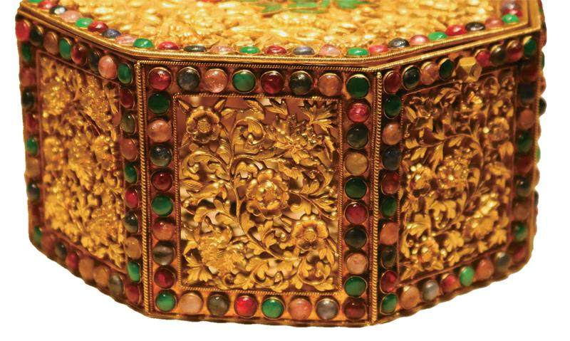 从自然角度看,黄金的物理和化学特性赋予其独特优势。它的化学性质稳定,不易与其他物质发生化学反应,抗氧化、耐腐蚀,历经千百年依然能闪耀迷人的光芒。黄金不仅色泽夺目、易于辨识,而且具有极强的延展性和可锻性,是所有金属中最具可塑性的一种,在无形之中满足了皇室对奢华工艺的追求。