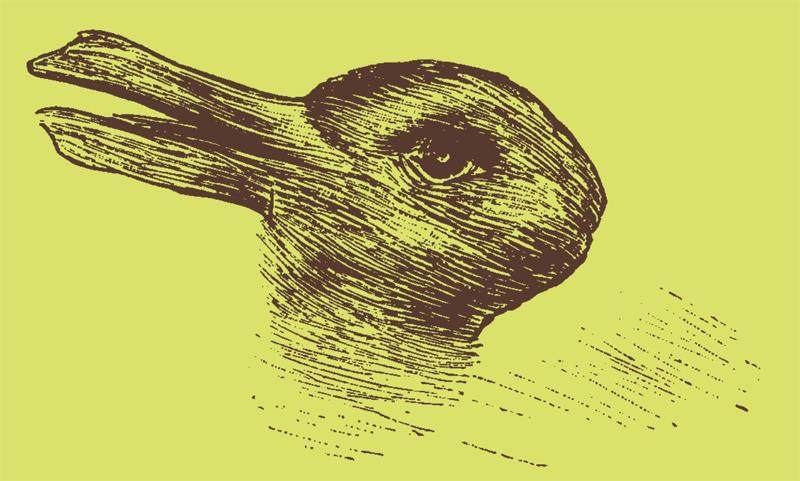 心理学中一个经典的“两可图形”实验很好地说明了延展心智的运作机制。该实验要求参与者想象一幅可被看作鸭子或兔子的简单图形,并尝试在脑海中将它从一个形象转化为另一个形象。结果发现,几乎没有人能仅靠想象完成这一转换过程。令人惊讶的是,一旦参与者被允许将图形画在白板上,并对其进行修改与重新构图,他们便能迅速实现从鸭子到兔子的认知切换。这一现象表明,当思维被外化为可视的形象或文字,我们就获得了一种“在场”的反馈机制,使原本抽象、模糊的认知过程变得可操作、可重组。在这里,白板不再只是记录工具,而是认知过程的一部分,辅助我们实现大脑无法单独完成的转化任务。