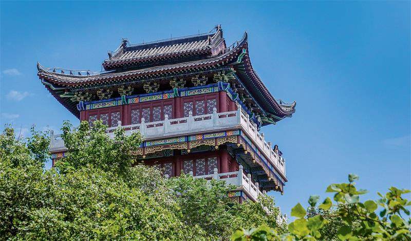 或许正是受到王维诗作的影响,曾经盛产荣萸的“小北顶”名声大噪,并被后人改名为“茱萸峰”。尽管改名的准确时间已难以考证,但不可否认,应是在王维创作《九月九日忆山东兄弟》并火爆“出圈”之后,更进一步说,是在近现代时期,可能是某人考证后认为王维曾登临此地,并被当地认可之后。当地人为了纪念王维,还在茱萸峰上修建了一座重阳阁,其阁高17.2米,分四层,以青石为基础,汉白玉为栏杆,阁楼内悬挂着王维的诗和画像。每一位在外漂泊的游子,来到这里都会被深深感动,激起思乡之情。
