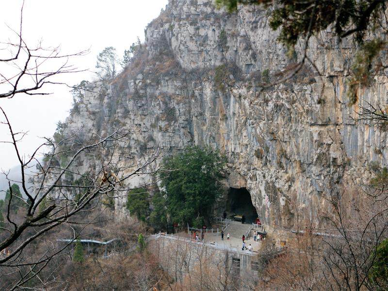 在通往茱萸峰半山腰,有一个高10米、宽11米、深30多米,朝东南方向开口的山洞,洞内供奉着唐代著名医药学家孙思邈及其徒弟的石像。据说孙思邈曾常年在云台山一带采药,所以人们将这个山洞称为“药王洞”。传说,孙思邈与徒弟曾在采药途中遇到一只老虎横于路中间,它大张着嘴巴,一副疼痛难忍的模样。孙思邈走近后发现老虎的喉咙中卡了一根骨头,他想方设法将这根骨头取出,救了老虎一命。老虎为了报恩,带着虎崽子们离开了山洞,把这个遮风避雨的好地方留给了孙思邈师徒。当然,这毕竟只是传说。“药王洞”形成的真正原因在于,构成茱萸峰的岩石主要是白云岩和石灰岩,这些碳酸盐岩在漫长的地质历史中,经过风化、溶蚀和崩塌等作用,形成了许多溶洞和裂隙。“药王洞”就是这样一个溶洞,其洞顶的钟乳石便是证据。