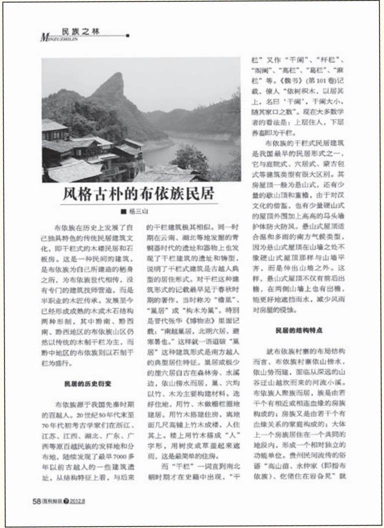 1. 下列对“布依族民居”的理解,不正确的一项是( )