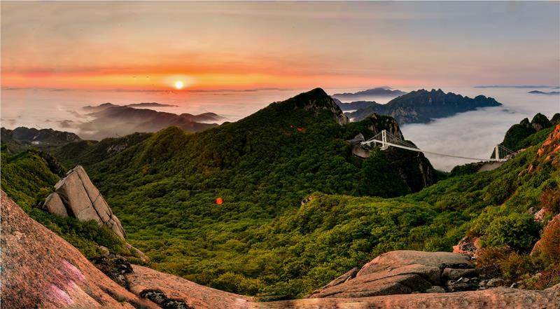 凤凰山得名于其形似凤凰展翅的山势,它虽不及“五岳”之高,却以险峻著称。山体主要由花岗岩构成,经过亿万年风化雕琢形成了“老牛背”“百步紧”“天下绝”等令人望而生畏的险峰。这些天然屏障既是登山者要面对的挑战,也是大自然鬼斧神工的见证。站在凤凰山第二高峰箭眼峰上,可远眺鸭绿江和对岸的朝鲜风光,这种独特的边境视角在国内名山中实属罕见。