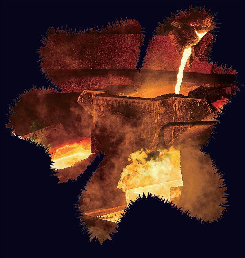 最后一步是冰铜吹炼,这是获取纯铜的最终方法。工匠会将液态的冰铜移至另一座吹炼炉,向其中鼓入强劲的空气。空气中的氧气会与冰铜中残余的铁和硫发生剧烈的氧化反应,最终将它们分别以炉渣和气体的形式除去,获得纯度较高的金属铜。