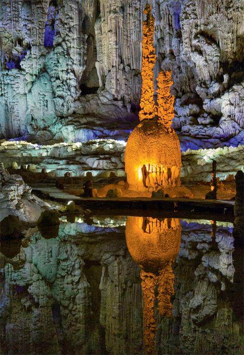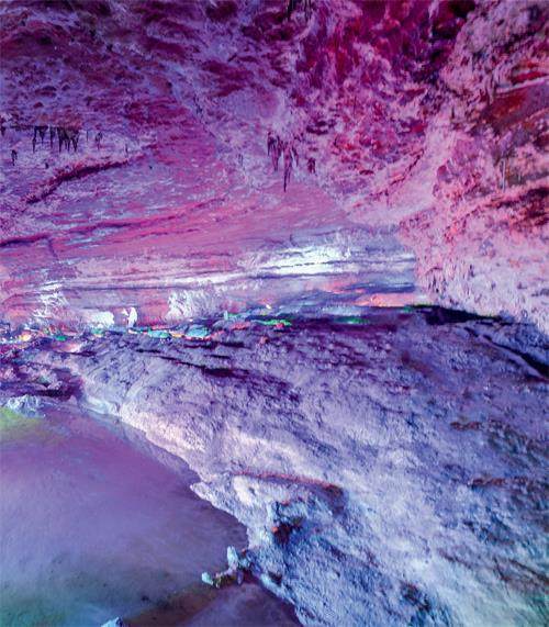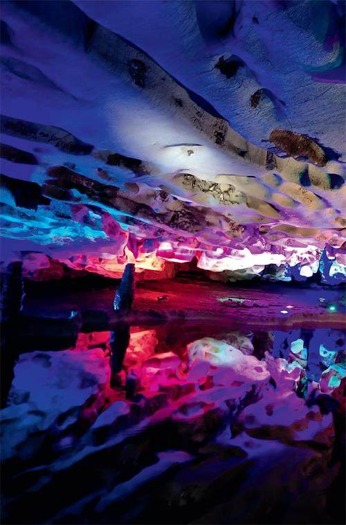 看过电视剧的人不难发现,冷水江的波月洞其实是一处典型的喀斯特洞穴。根据有关资料,波月洞规模宏大,主体岩洞长3000 多米,分上、中、下三层,洞中有洞,层层贯通,拥有27 个大厅和81 处景点, 总面积达4 万多平方米,形成至今已有2800多万年的历史。洞内怪石嶙峋, 穹顶钟乳垂悬,宛若星河倒泻;地面石笋林立,在彩灯映照下幻化出绮丽光影,水波轻漾处仿佛玉砌瑶台。潮湿而清新的空气,加上不时滴落的水珠,让游客心旷神怡,顿生“洞中一日,人间千年”的恍惚之感。