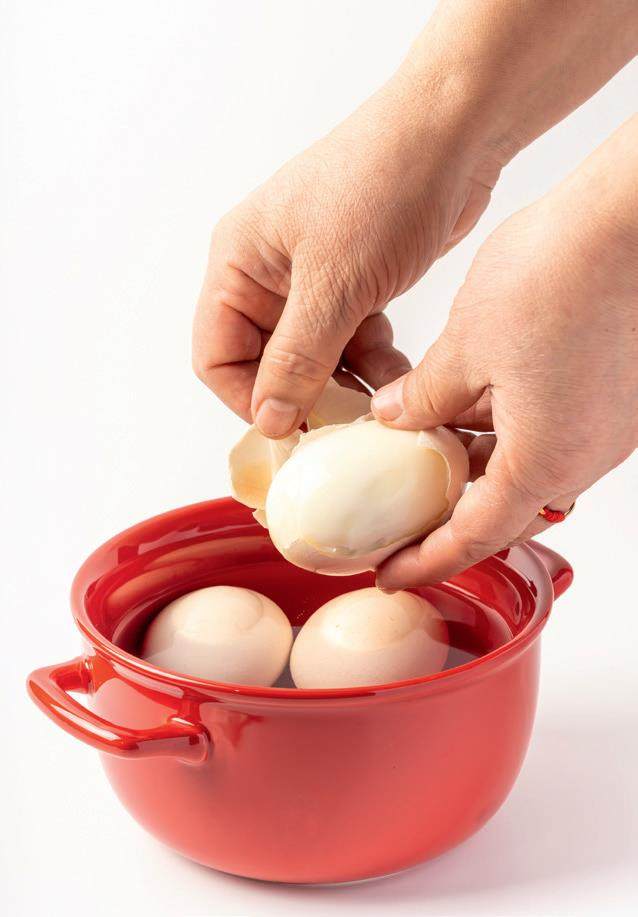 煮鸡蛋时,蛋白受热膨胀,部分蛋白会进入蛋壳的空腔部位,导致蛋壳和蛋白之间的缝隙变小,鸡蛋不太容易剥壳。而将煮熟的鸡蛋放入冷水后,由于蛋壳的导热性高于蛋白的导热性,所以两者的收缩速度不一样。收缩速度的差异会让蛋壳与蛋白上的蛋壳膜之间产生空隙而分离,而温差也会降低蛋白和蛋壳膜之间的黏附力。另外,水分可以通过蛋壳上的微小气孔渗入蛋白与蛋壳膜之间,起到一定的润滑作用,让蛋白与蛋壳膜变得更易分离。如此一来,鸡蛋壳也就更容易剥除了。