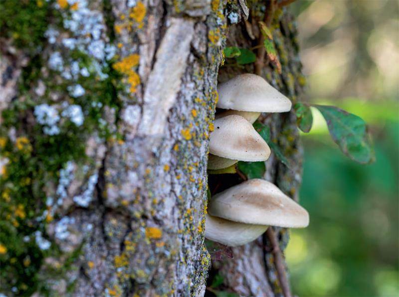 前文提到的“树穴生水,天有雨”,一般发生在乔木枝繁叶茂、生长旺盛的春夏之际。晴天的时候,树木通过根系吸收水分,这些水分会参与到树木的光合作用和蒸腾作用中;天气转阴后,气压降低、湿度增加,天空中的云量也会增多,树木进行光合作用和蒸腾作用的活跃度就会降低。虽然蒸腾作用的减弱会让根系减少对水分的吸收,但植物仍可以通过渗透作用吸水。因此,阴天或下雨前,树木的水分输入大于水分输出,多余的水分就会从树穴、树疤等部位溢出。类似的谚语还有“榆树生蘑,大雨成河”,环境的湿润和水分的渗出会让菌菇在榆树上快速生长,因此“榆树生蘑”也被看作下雨的前兆。
