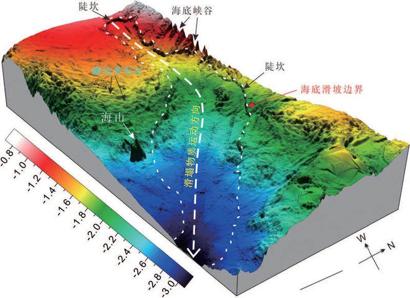 海底滑坡主要发生在大陆架坡折带、深海大陆坡、近海三角洲地带或者峡湾地区,是水下松散地质层在重力作用下沿斜坡向下发生快速滑动的过程,包括坍塌、滑动或者碎屑流的变化。