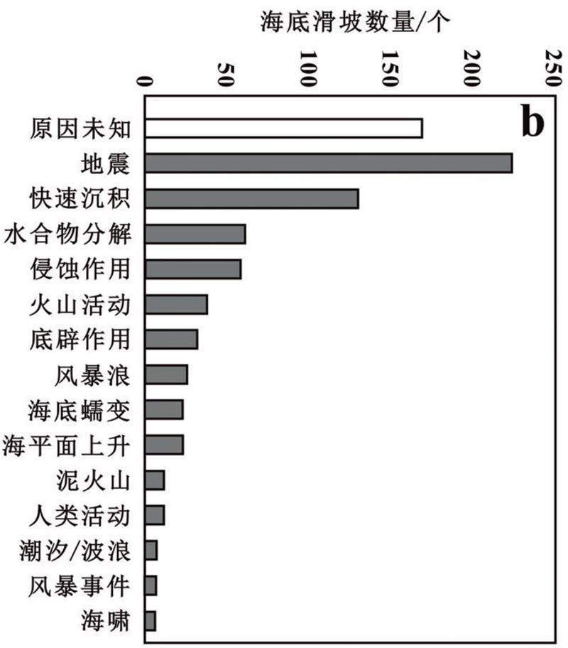 受海洋环境的复杂性和滑坡的短期瞬发性影响,开展海底滑坡现场监测和触发机制的研究极为困难,目前已经确认的滑坡触发原因基本都是研究人员根据掌握的海底滑坡情况进行的理论推演,但全球各区域海底滑坡的触发因素各有不同,尚未形成较为统一的共识。