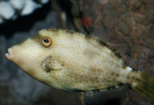 马面鲀也叫马面鱼,因其吻长、尖突,头面部略似马头而得名。马面鲀隶属于鲀形目、单角鲀科、马面鲀属,我国沿海有绿鳍马面鲀、密斑马面鲀等5种。马面鲀的身体较侧扁,呈长椭圆形,体长为20~25厘米,皮肤粗糙且具刺状㐀构。它们是暖水性近海底层杂食性鱼类,喜集群,在越冬及产卵期有明显的昼夜垂直移动习性。