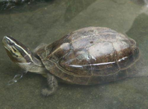 龟鳖目中名中有“马”的有马来龟、三趾马陆龟、马达加斯加壮龟、马来巨龟、亚拉巴马伪龟等。其中,分布于东南亚一带的马来闭壳龟隶属于地龟科、闭壳龟属。它的背甲长为20~21厘米;头部为橄榄色至黑色,头顶、头侧有黄色细斑纹;四肢背面为黑褐色,腹面为淡黄色;趾间有蹼;背甲中央隆起较高,为深褐色至黑色;腹甲为淡黄色,有黑色圆形斑点或不规则斑点。马来闭壳龟常栖息于沼泽、溪流、池塘等地,以植物的茎、叶和昆虫、蜗牛、小鱼等为食。