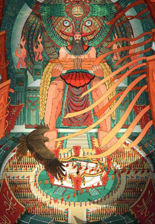 一天晚上,蚩尤张口喷出滚滚雾气。一时间,树林不见了,河流不见了,山丘不见了……整个大地被浓雾笼罩起来。大雾持续三日三夜后,炎黄联军完全迷失方向,陷入十分危险的境地,就连神仙也爱莫能助。