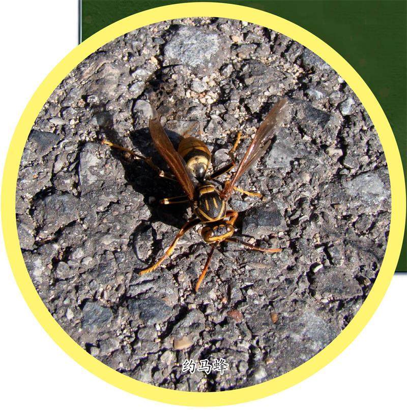 约马蜂也隶属于胡蜂科、马蜂亚科,体长为3.7~7毫米。其头部呈方形;唇基基半隆凸,端缘内凹;后头脊背方中央横形,不下弯;中胸盾片披密毛,盾纵沟浅但明显;并胸腹节具粗刻点,中纵脊强;体色为黑色,足为红褐色。约马蜂也被称为长脚蜂,广泛分布于我国河南、河北、浙江、江西、四川、福建、广东和广西等省区,常筑巢于丘陵山地灌木丛中,也会在人类居住地附近筑巢,对人类生活有一定影响。