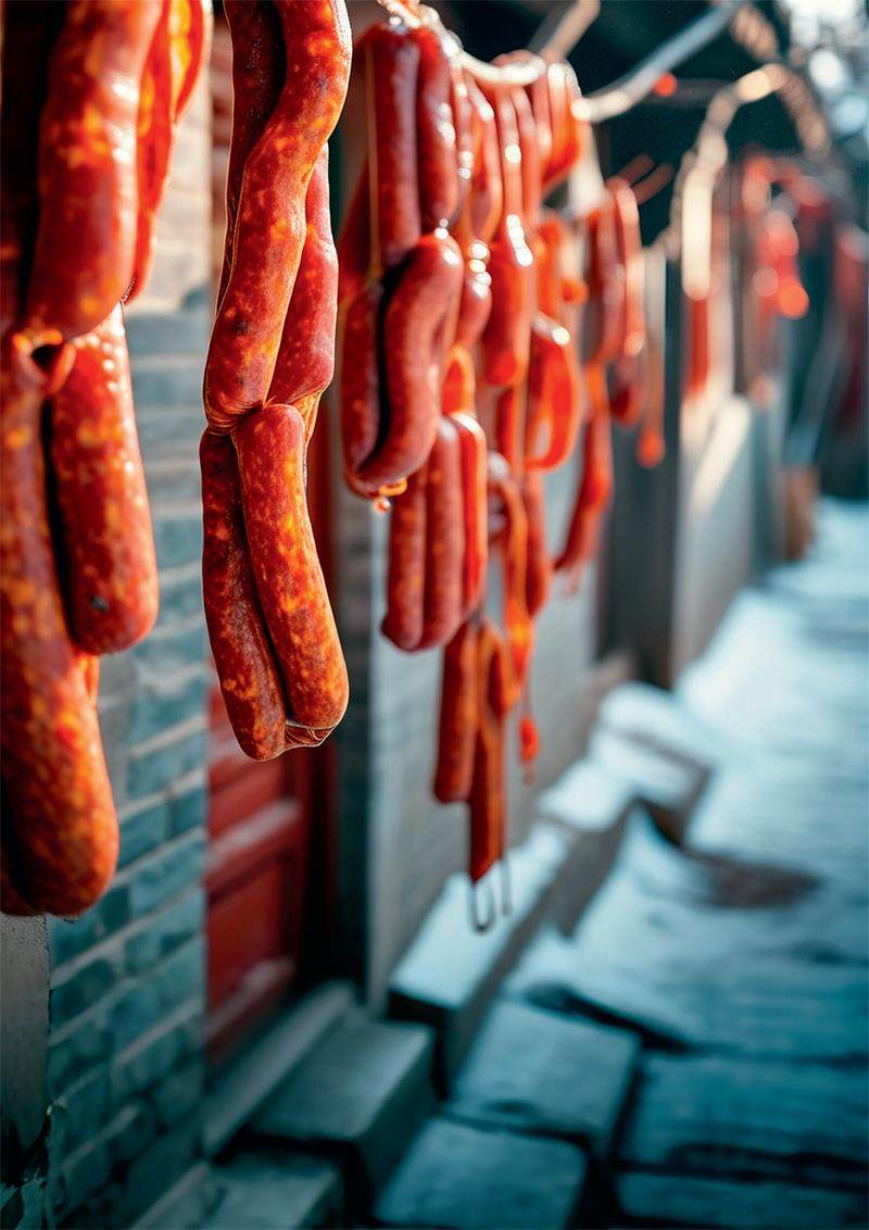 腊味渐浓时,归乡的脚步踏碎了异乡的霜雪。然而岁岁年关将至,总有漂泊的孤雁难赴故园的盛宴。此刻跨越山水而来的家乡年货,恰似寒夜薪火,在唇齿间填补缺憾,于方寸中抚慰离愁。万千包裹里,香肠里灌满了最多的属地情怀。它既是系住游子的风筝线,亦是割不断的脐带,纵使踏遍天涯海角,只需一缕熟悉的脂香,便能将漂泊的灵魂引渡回最初的灶台。