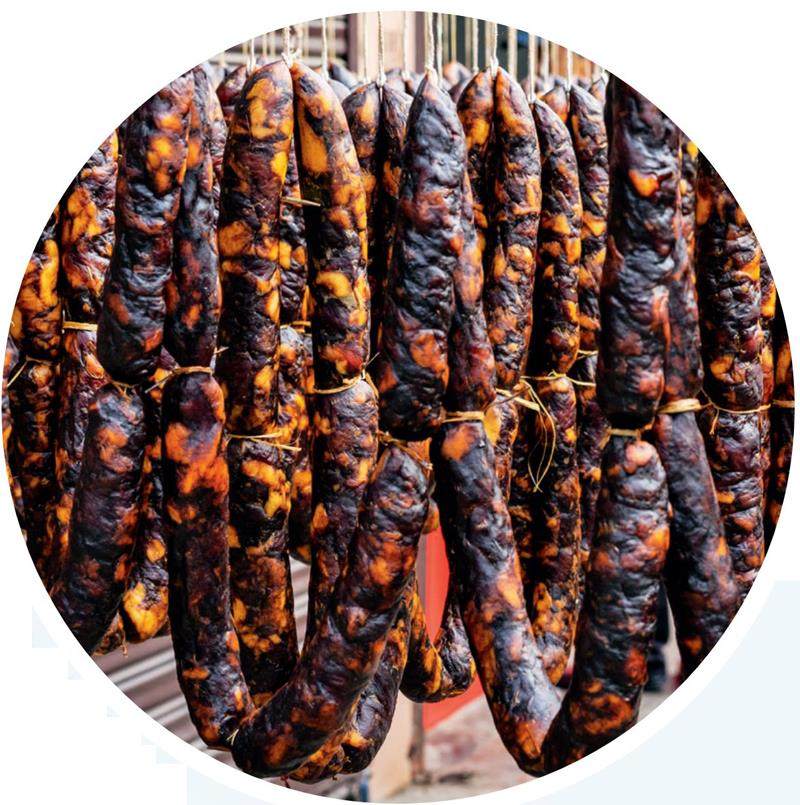 当暮色漫过山海,万家蒸腾的灶台上,各地的香肠正在水汽中舒展记忆的皱褶。哈尔滨红肠里凝冻的松江雾凇,熏马肠中游弋的天山雪线,莱芜南肠中沉淀的泰山晨露,姚安套肠间缠绕的云锦烟岚,安昌黑肠里游弋的乌篷墨韵,矮仔肠内封存的岭南季风,这些深藏于肌理的味觉经纬,皆是大地写给游子的无字家书。在异乡的餐盘中,它们以油脂为墨,在舌尖上重绘故园的山川脉络;用醇香作舟,载着漂泊的魂魄溯游至母亲河的上游。所谓属地情怀,不过是让千里外的风霜在齿间化作檐角融雪,令记忆里的炊烟重新攀上岁月的枝桠。而这些封存着故土呼吸的香肠,便成为游子舌尖的驿站,让漂泊的乡愁终有枝可依。