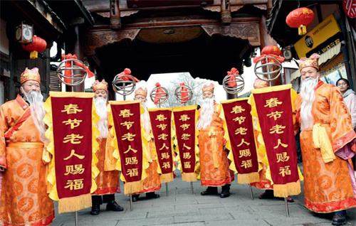 正月里的古城还有“春节老人”赐福活动。这些老人身着红袍、手持法杖沿街巡游,说吉祥话、发红包,传递对人们的新春祝福;“春节老人”身后紧跟着竹马牛灯、民俗婚嫁、张飞巡城、秀才赶考的游行队伍,在喧天锣鼓声中,亮花鞋、舞草龙、逗幺妹等民俗表演轮番登场,欢声笑语溢满街巷。