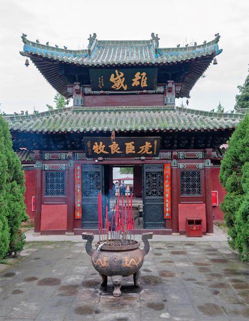 山门之后的敌万楼是祠庙的标志性建筑,建于明代,高十余米,重檐歇山顶,檐下高悬“灵庥舄奕”“万夫莫敌”“虎臣良牧”巨匾,恰好呼应《三国志》中对张飞“称万人之敌,为世虎臣”的评价。