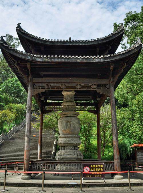 景区现存最核心的唐代文物是玉台山石塔(又称“唐代舍利石塔”)。该塔建于4世纪,是川北罕见的唐代密檐式石塔,高8.25米,塔基为两层须弥座,下层方形,刻梅花纹,上层圆形,浮雕祥云,塔身正中龛内刻有释迦牟尼跏趺坐像,塔刹由8尊石雕力士托举,姿态各异,虽经千年侵蚀,仍保留唐雕神韵。其旁侧唐代石窟造像与之相得益彰,共同构成川北唐代佛教艺术的珍贵实物佐证。