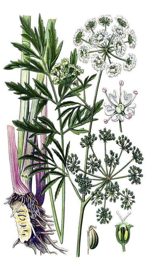 毒芹中所含的毒芹素主要通过干扰中枢神经系统,引发潜在的致死性癫痫;而毒参中所含的毒芹碱所起的作用则完全不同,它会造成肌肉麻痹,严重时会引发呼吸骤停,令人窒息而亡。在莎士比亚的戏剧作品《麦克白》中,巫婆制作药酒的原料就是毒参。