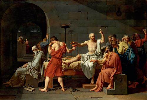 苏格拉底因主张无神论和言论自由,与雅典当时的社会观念格格不入,于公元前399年被雅典法庭冠以“侮辱雅典神和腐蚀雅典青年思想”的罪名判处死JZhKhJGB5YNVrbh+ErPWfjp3Eob/5p8ng1bOMY2w9bs=刑。此前,他的亲友和弟子都劝苏格拉底去国外避难,他却决定以牺牲自我的方式维护法律的权威。最终,这位伟大的思想家、哲学家和教育家在弟子的陪伴下从容服下毒药。据相关记载,苏格拉底服下去的就是一碗绿色的毒芹汁。
