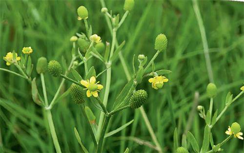 除了毒参,伞形科的其他有毒植物也常常被归类到“毒芹”之列,比如同样含有毒芹碱的欧毒芹(拉丁学名为Aethusacynapium)、含有水芹毒素的毒水芹(拉丁学名为Oenanthecrocata)等。另外,毛茛科毛茛属的一年生草本植物石龙芮(拉丁学名为Ranunculussceleratus),因同样喜生于湿地或河沟边,且植株形态与水芹有几分相似,而被人们称为“野芹菜”或“假芹菜”。这种“野芹菜”体内含有原白头翁素,误食后也可引起剧烈的皮炎发疱和胃肠不适等中毒症状。
