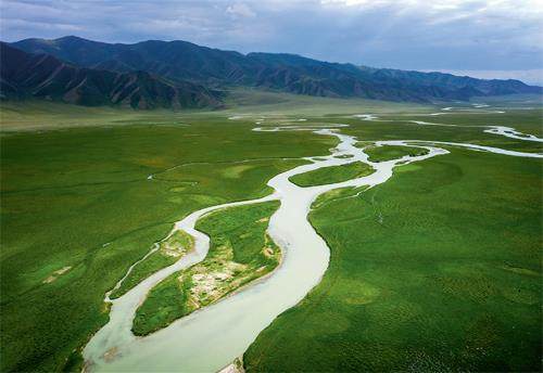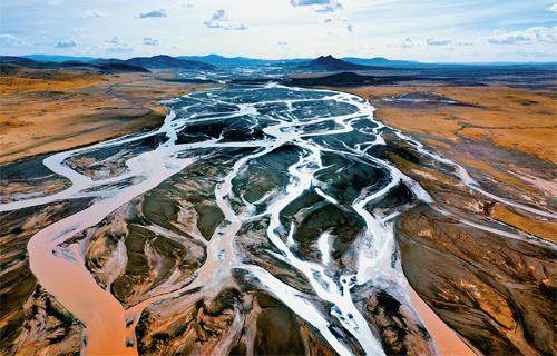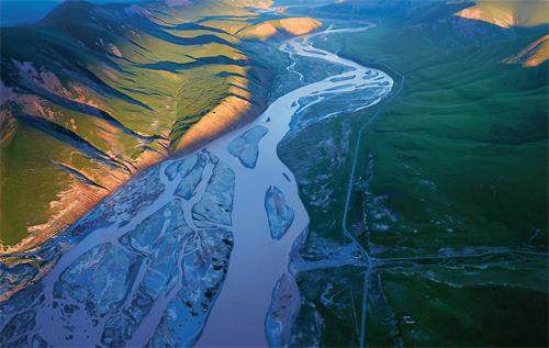 辫状水系是由多数汊流构成的水系,水流交错,宽窄不一,状似发辫,通常发育在三角洲、冲洪积扇、山前倾斜平原,水流较小但河谷十分宽广的河段上也会出现辫状水系。由于河心滩的堆积,新的分汊不断出现,导致辫状水系的河床极不稳定,变化很大。长江源区的通天河就是这一变化的典型代表,其辫状河道长达300 多千米。在通天河口,当曲与沱沱河汇合后水量增加,辫状河道宽达1 千米,而当河水流至玉树藏族自治州曲麻莱县以下进入高山峡谷后,其辫状水系便消失了。通天河流域之所以会出现辫状水系,主要原因在于河床下有冻土,河水难以向下侵蚀,河道两岸没有山体约束,水流容易四处改道。而且,河床上沉积较多的粗颗粒泥沙,不利于形成稳定的单一河道,尤其是在坡度较大的地段,水流易分割沙洲形成多条汊道。此外,河道岸边植被较少,难以抵抗流水的长期侵蚀,进一步加剧了河道的散乱状态。