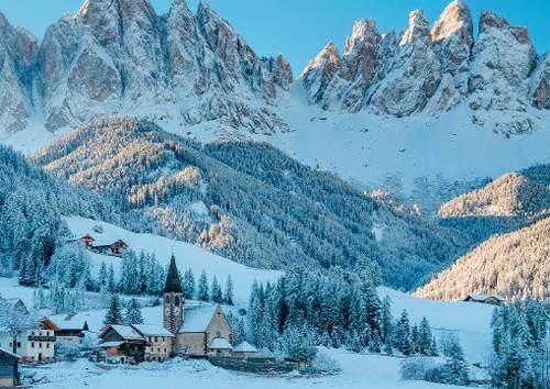 冬季,除了滑雪,游客还可以去看看皑皑白雪中的科尔维利亚村。该度假村原本是冬季牧场,村中仍保留着传统的阿尔卑斯木屋建筑,房屋底层选用当地石材建造,坚固耐用,上层采用落叶松或云杉等深色木材,外露的横梁带有雕花,屋顶则异常陡峭,便于积雪滑落,防止屋顶被压塌。伴着烟囱中冒出的袅袅炊烟,白雪覆盖下的村庄静谧而美好,宛如安徒生童话中的场景再现。