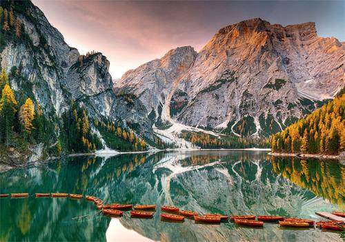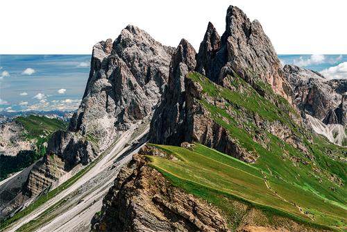 2.5亿年前的中生代,这里只是广袤的古特提斯洋的一部分。在漫长的地质年代里,海洋生物的遗骸与其他海洋沉积物不断堆积,经过压实、石化作用,逐渐形成厚达数千米的石灰岩地层。随着阿尔卑斯造山运动的兴起,板块碰撞产生的巨大挤压力,推动地层持续抬升、缓慢隆起,最终铸就了海拔超3000米的雄伟山4613a357e280b758e8e572d1a2304d38地。此后,第四纪冰川的刨蚀、流水的侵蚀以及风力的雕琢,将原本平缓厚重的沉积岩层塑造成犬牙交错、嶙峋挺拔、形态各异的白云石峰林,造就了独一无二的地貌奇观。更令人称奇的是,这里的白云石岩层中富含铁、锰等矿物杂质,在不同的光照条件下,山脉呈现出变幻莫测的色彩,尤其是日出和日落时分,阳光与岩石碰撞出从粉红到火红的绚烂光影,这便是多洛米蒂独有的“恩罗萨迪拉”光晕现象,也就是“阿尔卑斯之光”。这种纯净岩石与绚烂光影的交织正是“白云岩女王”称号的由来。