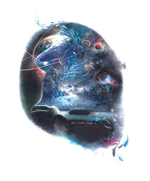 那情景令人想起华裔作家特德·姜的小说《你一生的故事》中,外星种族七肢桶使用的一种非线性语言。如果它们也有小说,那就不是一个字一个字或一行一行地写成的,也不是一个字一个字或一行一行读完的,而是一幅巨图,像一个层次丰富的汉堡包,一口咬下,每个横截面的味道都在其中了。根据这部小说改编的电影《降临》,在一个七肢桶与人类对话的场景里,它们的语言,像一幅幅喷洒墨汁画出的画,或罗夏墨迹测验——那图景扩大亿万倍,就恰如我此刻眼前所见。