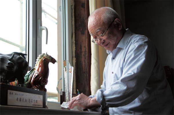 数不清的荣誉证书,被这位老人随意地归置到一个个袋子里,堆放在衣柜上“吃灰”。唯独有一张奖状,被他挂在客厅里最显眼的地方。“这张奖状是九院发给我的。”魏世杰自豪地说。