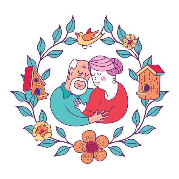 坐在一旁的老奶奶把手放在老爷爷的手背上,轻声细语地说: