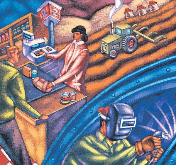 但后来工人又发现,他们可以找到新的工作:有人种小麦换钢材,赚得比以前还多;有的人则进入一些新兴行业。所有人都觉得,这是一件大好事。