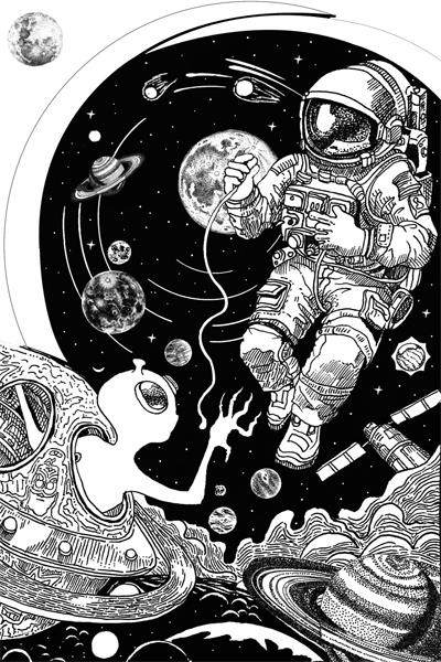 这种对外星人的既爱又怕,在科幻电影中展露无遗。1977年,就在“旅行者”号探测器升空后不久,斯皮尔伯格导演的科幻电影《第三类接触》上映了,接着是1982年的《E.T.外星人》,充满善意、乐于助人的外星人形象一时深入人心。但是1996年,蒂姆·波顿导演的电影《火星人玩转地球》,狠狠讽刺了那些把外星人想象成“天使”的地球人。斯皮尔伯格在其2005年的电影《世界之战》中,也拍起了外星人入侵地球的戏码。更高的技术文明并不等于更高的道德文明,所谓“远方的文明朋友”,谁说不会是“门口的野蛮人”?