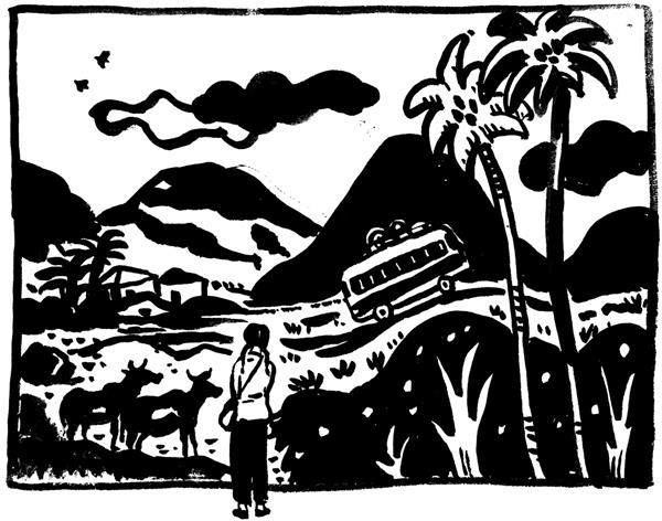 当旅客们乱哄哄地挤上车时,当汽车在平坦的道路上启动并加速时,我的未婚妻却不知去向了。我搜寻了目之所及的一切地方,还是没见着人影儿。我伸出手却无对象可招,只好朝天空胡抡两下。