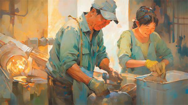 干活的时候,妻子做老刘的助手。老刘的手艺相当好,动作如行云流水。妻子的配合也很默契。老刘在前面忙,头也不回,手向后一伸,盯着他看的妻子就把一件工具或者一个零件递到他的手上。我每次看到他们在忙,心里都十分惊叹:他们根本不像在做水电工的活儿,倒像在无影灯下做一场手术;老刘是医生,妻子是护士。