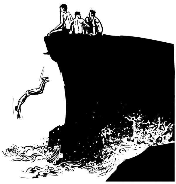 冰凉的海水刺痛了他胳膊和腿上的伤口。他定了定神,虽然没有完全抛开恐惧,却也压不住自豪。他向赶过来的大卫挥了挥拳头,喘着粗气讲述刚刚发生的礁洞历险,庆幸自己闯过鬼门关。