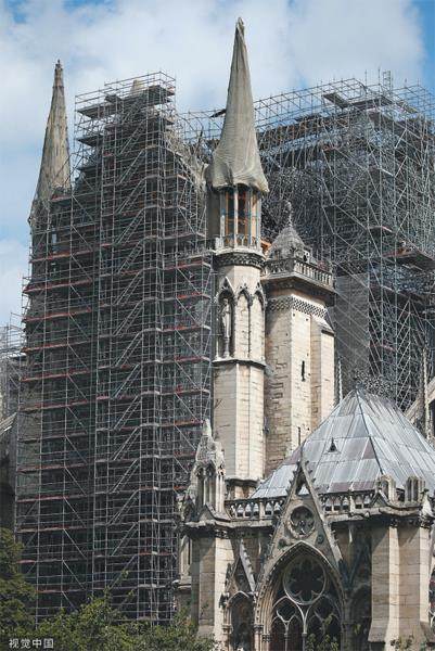 历时4年,耗资70亿人民币,坍陷的中殿拱顶终于完成封顶,标志性的尖塔也进入组装阶段。