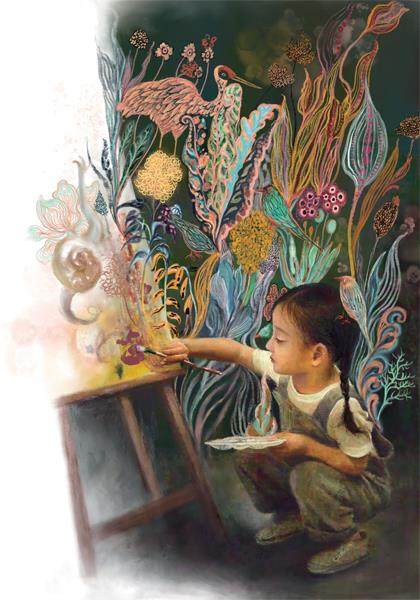 我当时就在外面看着,心想:算了,不能让女儿学画画了。她将来又不打算做油漆工,干吗非要涂均匀?然后我就带她回家,她自己愿意画点什么就画点什么吧。
